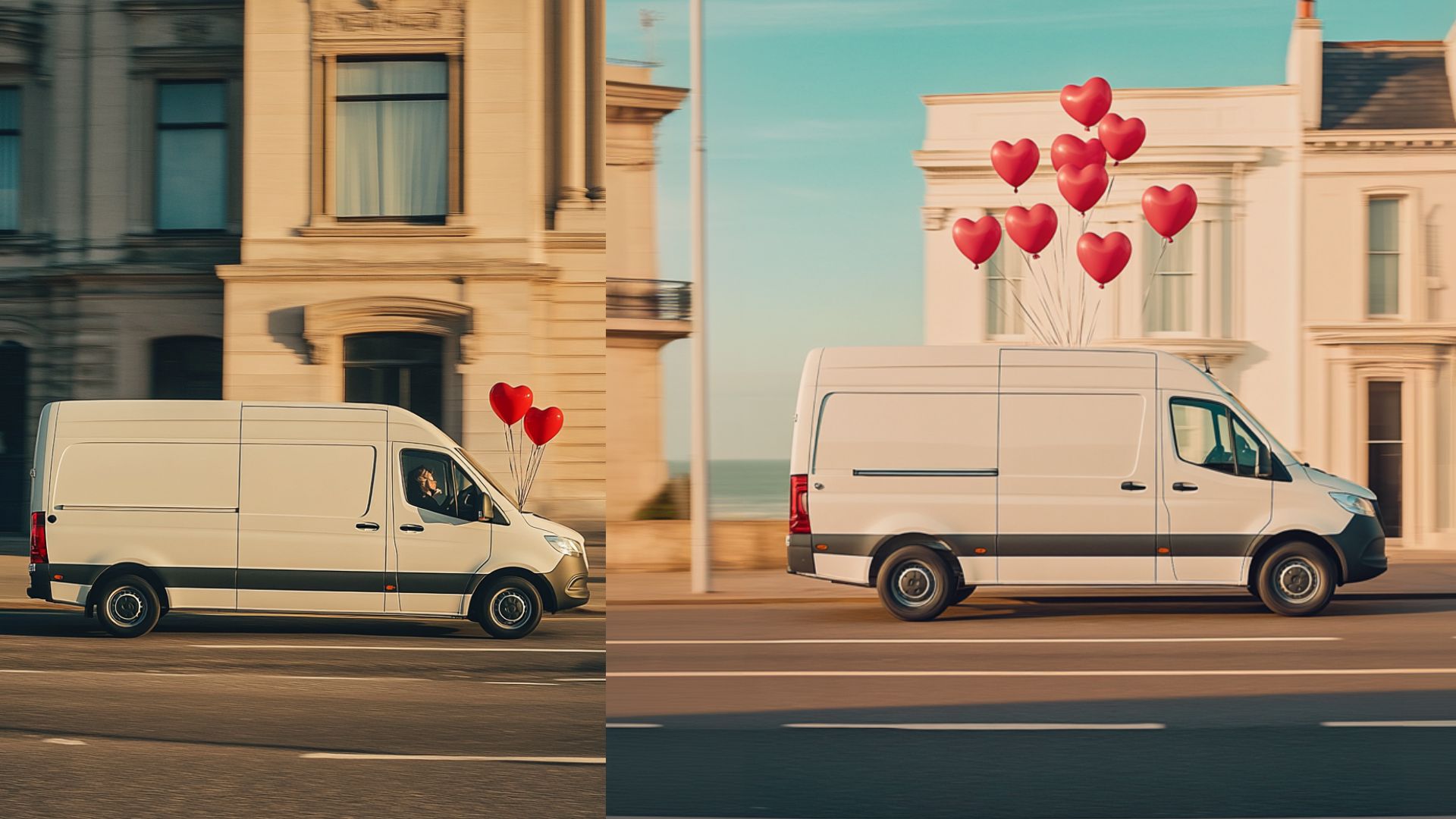 1. Their actual Mercedes benz sprinter carrying red heard shaped baloons, for Valentine’s Day.